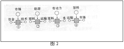 A.①原料 ②市场 ③技术 ④能源