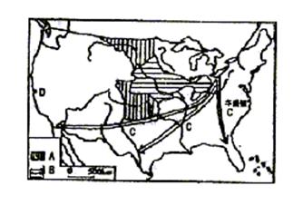 (4)D城市名为 ,该城市东南有世界著名的“硅谷”,主导工业是 ,