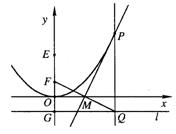 =2,且EF⊥l于G,点Q是直线l上一动点,点M满足: