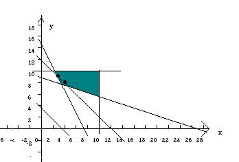⑴因为,目标函数为z=x+y(x、y为整数),所以在一组平行直线x+y=t(t为参数)中,经过可行域内的整点且与原点距离最近的直线是x+y=12,其经过的整点是(3,9)和(4,8),它们都是最优解.