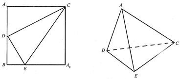 19.如图,正方形A1BA2C的边长为4,D是A1B的中点,E是BA2上的点,将△A1DC及△A2EC分别沿DC和EC折起,使A1A2重合于A,且二面角A—DC—E为直二面角。