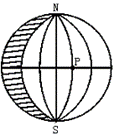 (2001年全国文综,1~2)图中阴影表示黑夜。读右图,判断13~14题